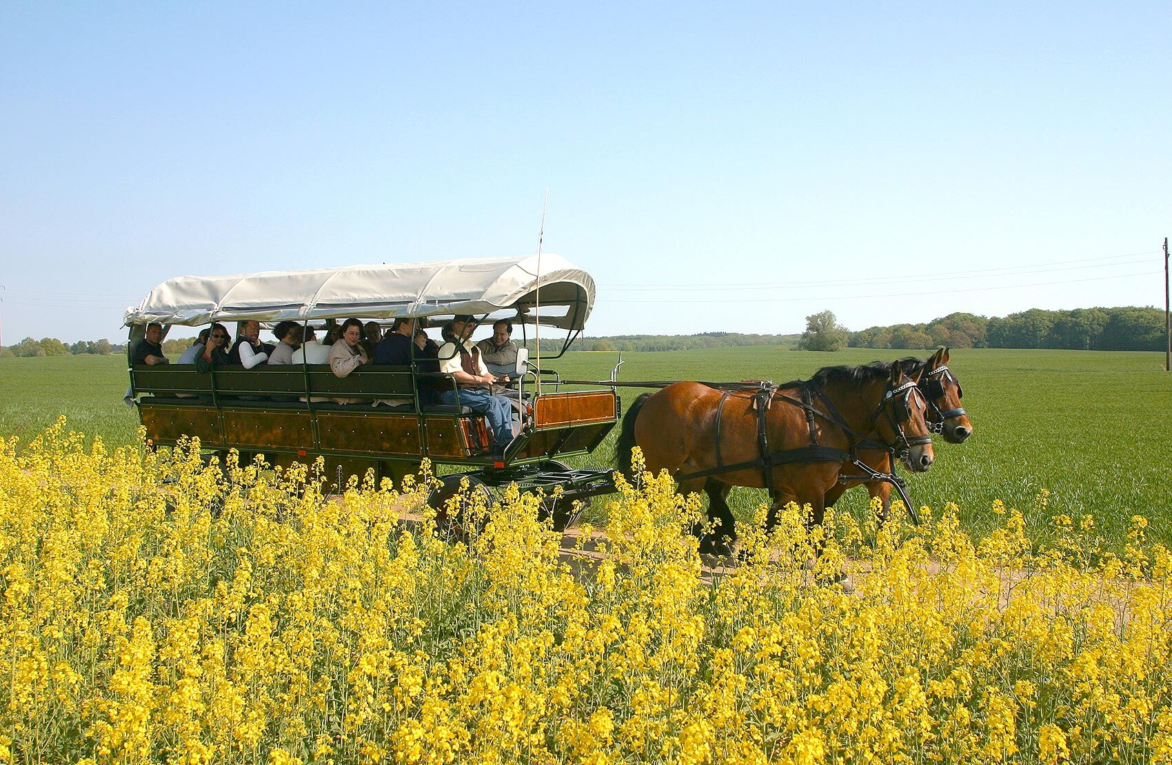 Machen Sie eine dreistündige Kremserfahrt durch den Müritz Nationalpark mit Picknik im Grünen (Kaffee und Kuchen) und anschliessendem Grillnachmittag oder -abend mit Pute am Spieß und Salatbüffet oder buntes Grillbüffet.