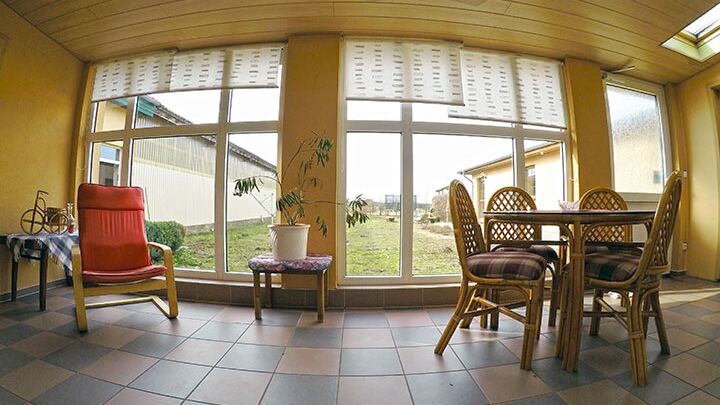 ca. 120 qm Ferienwohnung mit 4 Schlafräumen (4/2/2/2 Betten), große Wohnküche mit kompletter Küchenzeile, Geschirrspüler und Esstisch für 9 Pers., herrlicher Wintergarten mit Blick und Zugang in den Garten, Gartenmöbel, Grill und Feuerstelle, WLAN kostenlos, Fussbodenheizung
